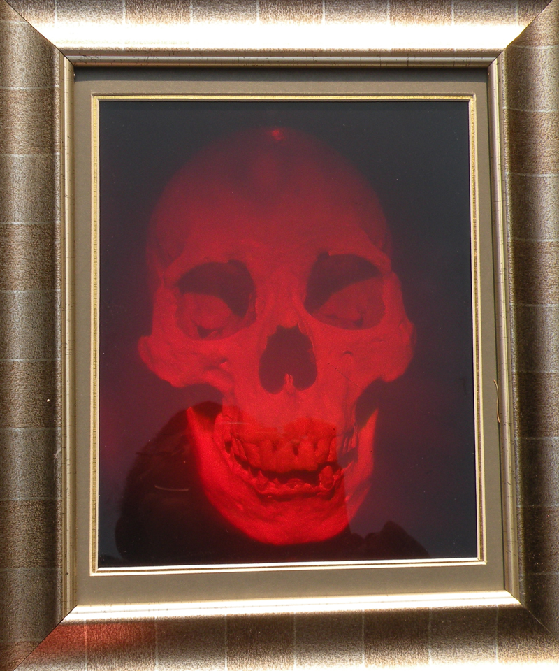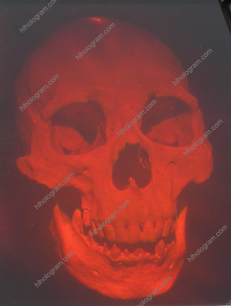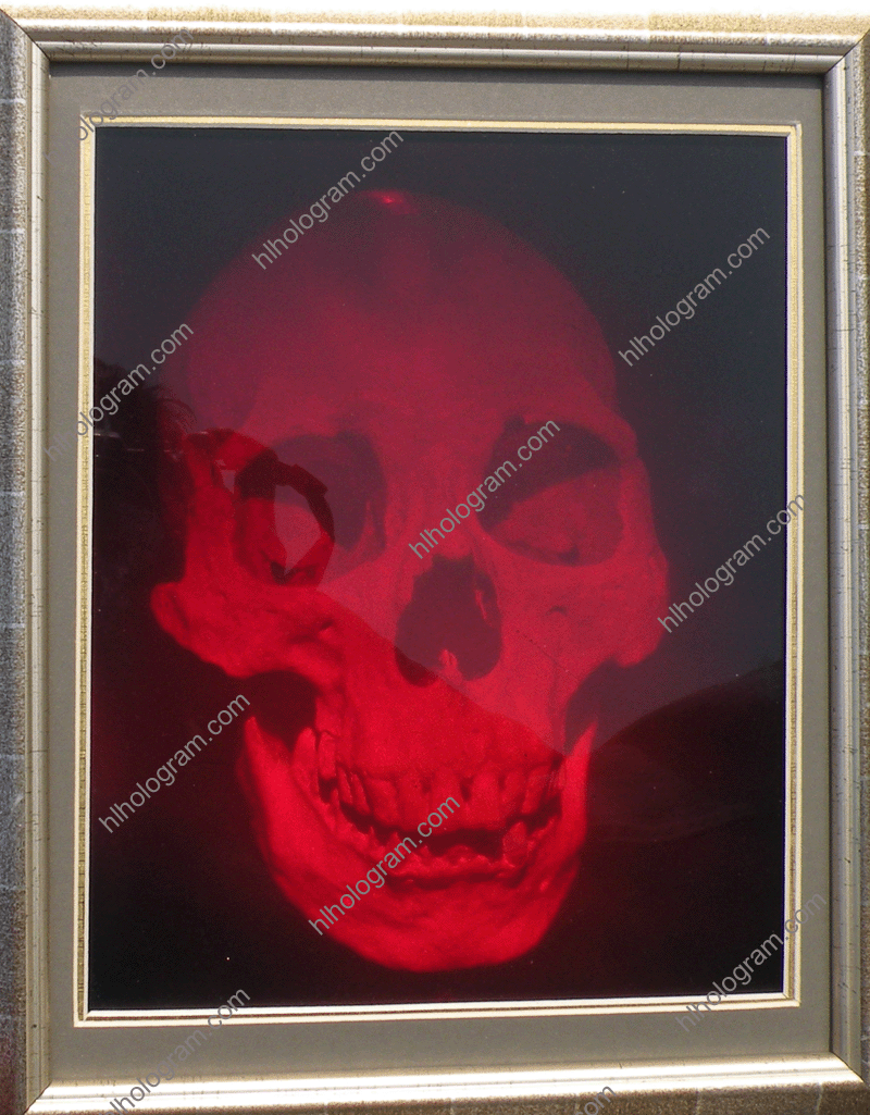 3D holography of a Skull. This art hologram has good real 3D hologram effect with wood frame. It's size is 250mm*200mm.