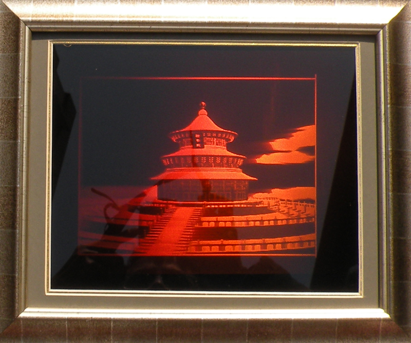 3D art holography with wood frame. Eye-catching art hologram is recorded on to a photographic glass(photoresist). It displays a virtual object reproduces real 3D magic hologram and play a vital role to get the impact and attention you have been seeking. High artistic value 3D art holography can produce spectacular displays for educational, medical, scientific, artistic and commercial purposes.