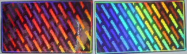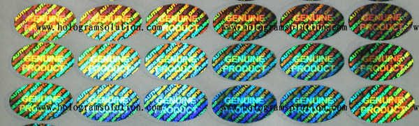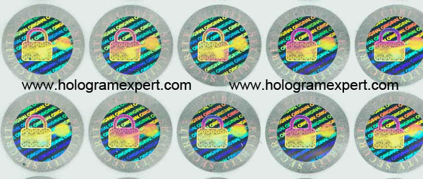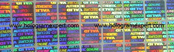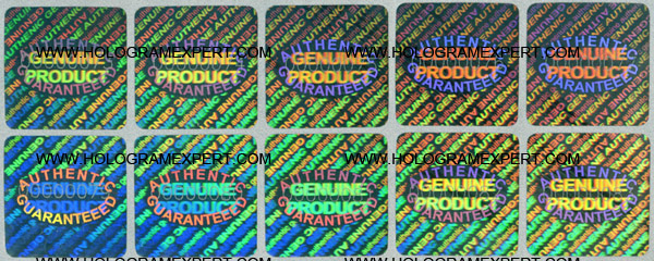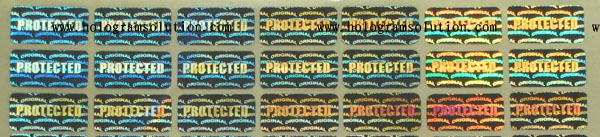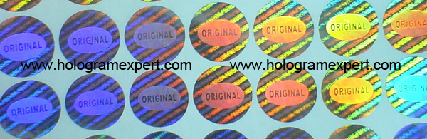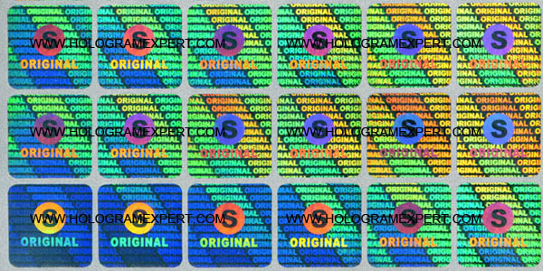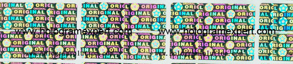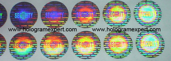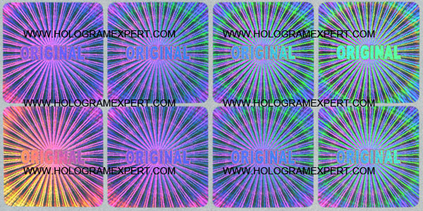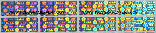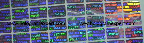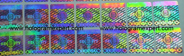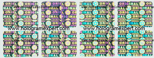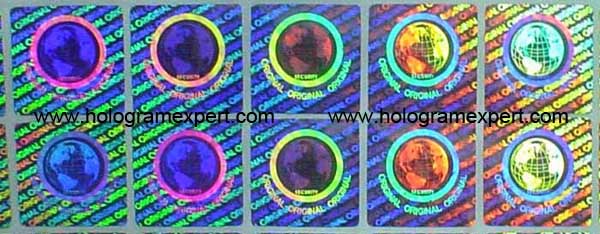 The holograms below in general designs as ORIGINAL, AUTHENTIC, SECURE, can be made in different color base material. These photoes are holograms labels made of silver color tamper evidnt base material. To increase security, it's good to make pressure sensitive tamper evident (temper-proof) self-adhesive holograms with pattern released feature material which will leave word as 'VOID', 'ORIGINAL' when peeled off. It's also great to make sequential numbers(transparent or black) on these holograms. These holograms are available to be cutted into smaller size. You can choose below holograms without paying holographic master origination charge freely.