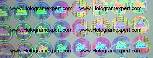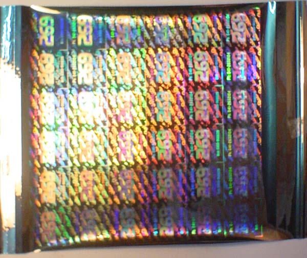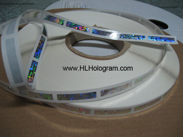 Hologram label in roll format. We can make hologram label in roll wih similair gap for automatic machine application.