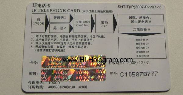 Scratch hologram label is widely used to cover Pin codes for the lottery card, banking , mobile charging cards, discount coupons, password, etc. The hologram image improves security ability of scratch coating greatly instead of normal scratch coating which is used for mobile charging cards or gift coupons.