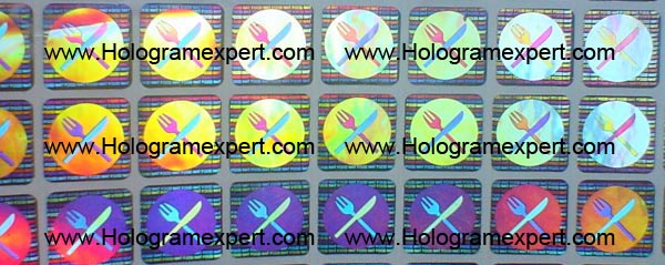 Hologram sticker in Stock: 25mm*25mmmm, Dot-matrix type hologram.