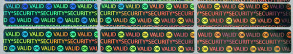 Hologram sticker in Stock: 30mm*10mm, Rectangle, 2D/3D type hologram.