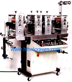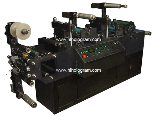 This hologram machine can hot stamping hologram and cutting holographic paper sticker in roll. It automatic machine work with register eye mark(Photo cell).