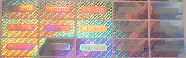 Hologram sticker in Stock: 40mm*10mm, 2D/3D type hologram.