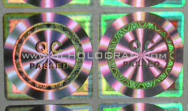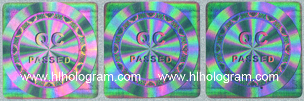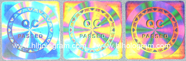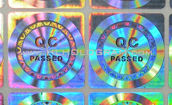 Dot matrix QC Passed Holographic sticker. Label cutting can be circle, oval and special shape which is smaller than 20mm*20mm. Hologram sticker can in color of silver, golden and blue. It can be made into transparent Hologram too.