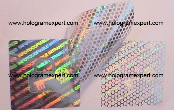 Hoeny Comb Pattern Released tamper evident hologramm will leave 'Hoeny Comb' when peeled off. It enhance your hologram security a lot because only few company can make good pattern released.