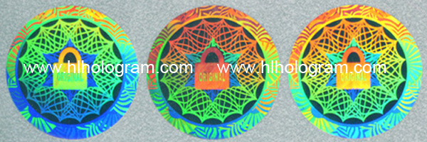 Dot-matrix Holographic Label. Label cutting can be rectangle with round edge, circle, oval and special shape which is smaller than 30mm*10mm. Hologram sticker can in color of silver, golden and blue. It can be made into transparent Hologram too.