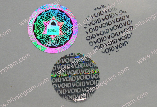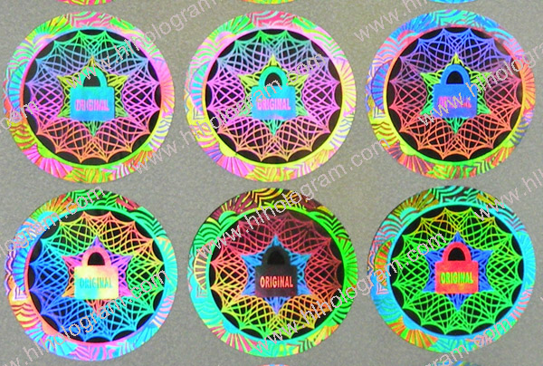 Dot-matrix + 2D /3D Hologram sticker. Label cutting can be rectangle with round edge, circle, oval and special shape which is smaller than 30mm*10mm. Hologram sticker can in color of silver, golden and blue. It can be made into transparent Hologram too.