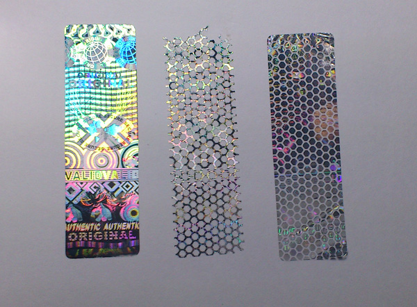 Our hologram sticker products include pressure tamper evident(proof) holographic sticker, VOID ORIGNAL pattern released holographic sticker, holographic sticker serial numbered, hologram with hidden text. Sticker in roll format and application machine New Items New General Design Hologram Sticker New Big Master Origination Enhanced Security Feature Hologram Sticker With Sequential Numbers 'VOID', 'ORIGINAL' Pattern Released Hologram Overprinting Released Hologram Two Kind of Hidden Text(image) in Hologram We supply whole set hologram machines including holographic master shooting system, electronic forming machine, hologram embosser, laminator and die-cutting machine. Click to Visit Affordable Hologram Machinery Hologram Sticker Production Photoes |