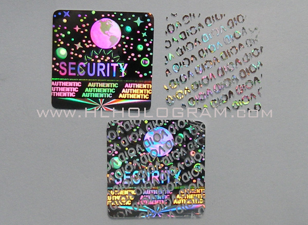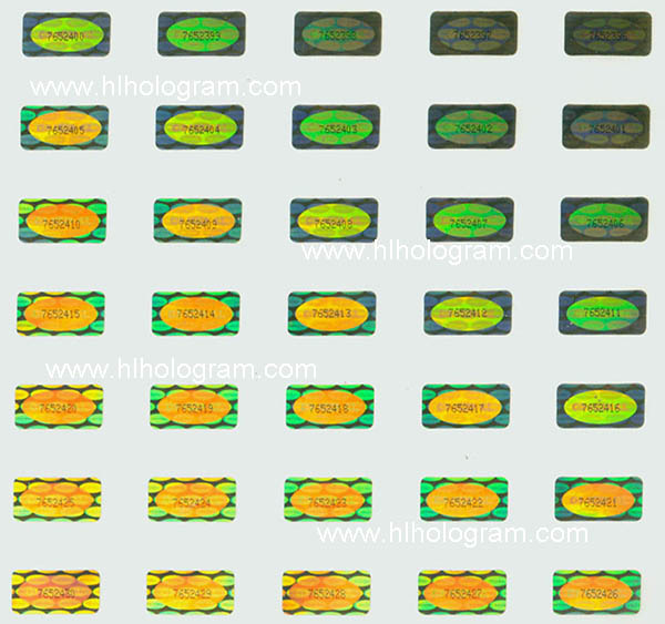 Dot matrix + 2D/3D Hologram sticker. Label cutting can be circle, oval and special shape which is smaller than 20mm*20mm. Hologram sticker can in color of silver, golden and blue. It can be made into transparent Hologram too.