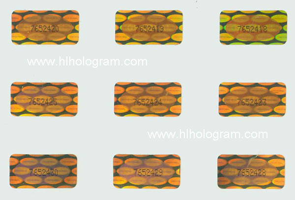 20mm*10mm . ORIGINAL Hologram, serial number. Golden. 2D3D Hologram. Its material PET film can be in color of silver, golden and blue. It can be transparent film too.