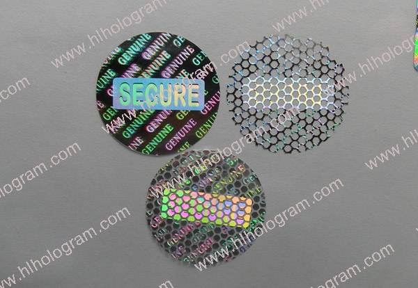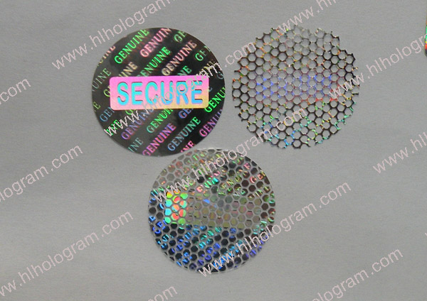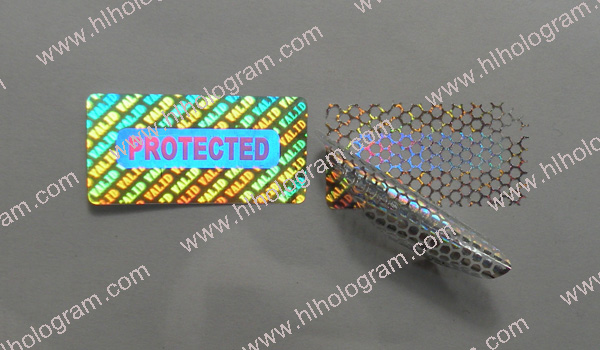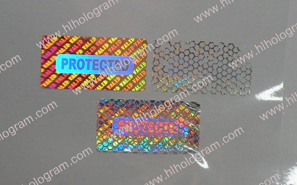 Tamper evident hologram label has 3 layers: PET film, hologram metallization layer and glue. Honeycomb tamper evident.