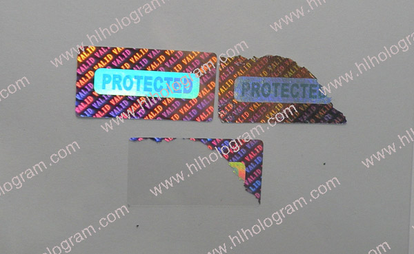 Tamper Evident hologram sticker. Tamper evident/Tamer proof is default feature for security holographic sticker. The hologram sticker leaves residue when peeled off.