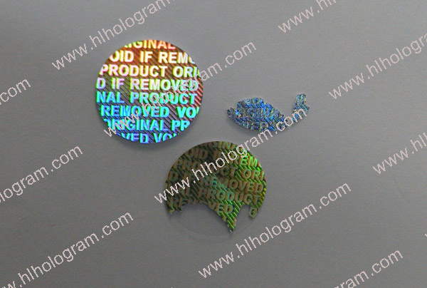 Tamper evident hologram sticker has 3 layers: PET film, hologram metallization layer and glue. Aluminium hologram metallization layer gets destroyed when peeled off.