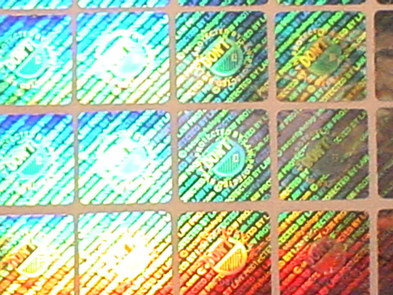 Tamper evident hologram sticker. Destructive tamper evident security holographic sticker gets destroyed when removed.Hologram sticker has silver metalized layer on PET film. It leaves residue in random shape when removed. 3D holographic security labels, security hologram stickers for authentication and protection against counterfeit.