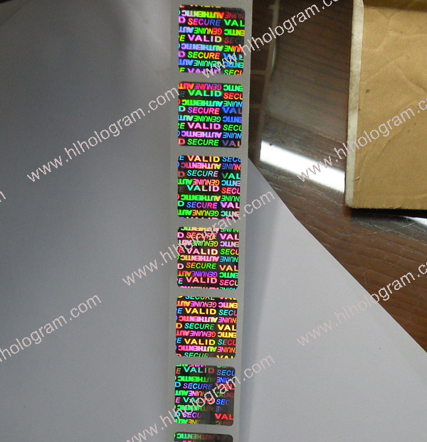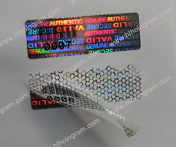 Tamper evident hologram sticker has 3 layers: PET film, hologram metallization layer and glue. Aluminium hologram metallization layer gets destroyed when peeled off.
