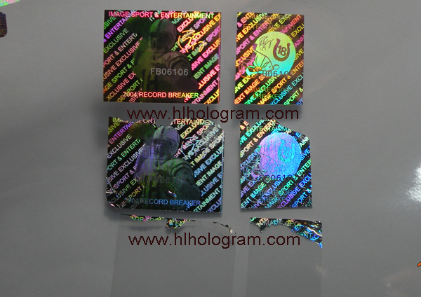 Tamper Evident hologram sticker. Tamper evident/Tamer proof is default feature for security holographic sticker. The hologram sticker leaves residue when peeled off.