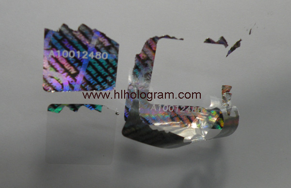 Tamper evident hologram sticker has 3 layers: PET film, hologram metallization layer and glue. Aluminium hologram metallization layer gets destroyed when peeled off.