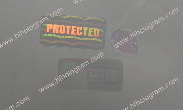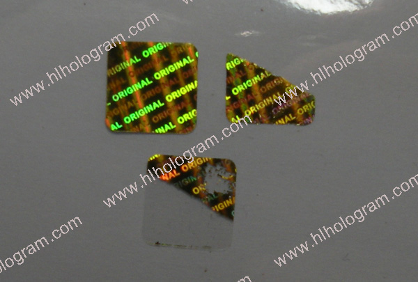 Tamper Evident hologram sticker. Tamper evident/Tamer proof is default feature for security holographic sticker. The hologram sticker leaves residue when peeled off. ORIGINAL hologram sticker is Dot-matrix Holographic Label.