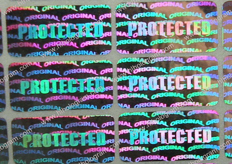 20mm*10mm size hologram sticker. It has word 'PORTECTED', 'ORIGINAL' on sticker. Silver base.