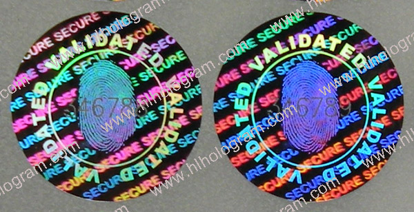 Validated Hologram sticker, 20mm diameter with finger printing mark.