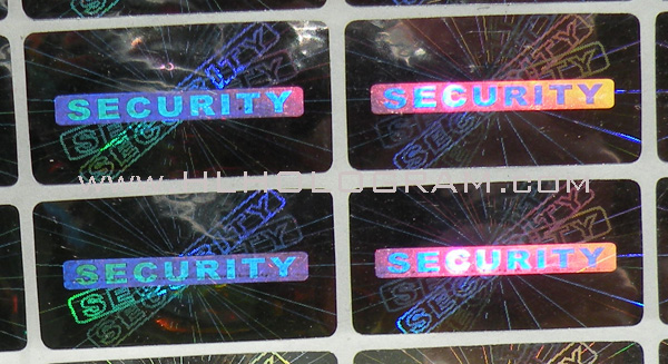 This holographic sticker is dot-matrix type. It has rainbow effect text 'SECURITY' and