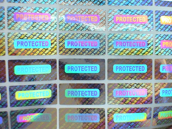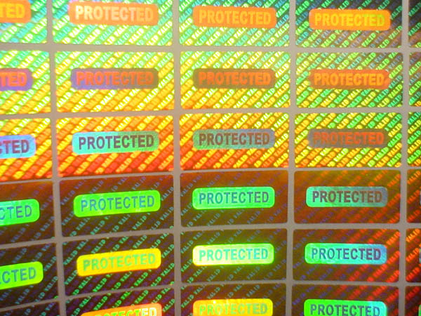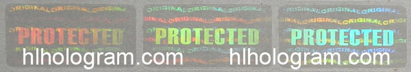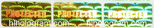 Tamper evident hologram sticker with 'PORTECTED', 'ORIGINAL' word. Above photo is golden color sticker.