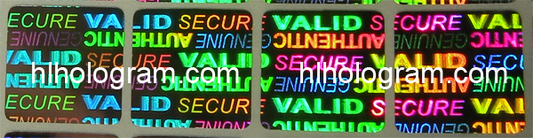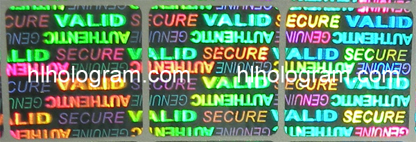 This holographic sticker is 2D/3D type. It has text 'VALID, AUTHENTIC, SECURE, GENUINE'. The size of sticker is 15mm*10mm.
