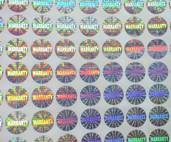This hologram sticker is dot-matrix type. It has text 'WARRANTY'