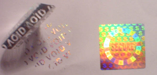 sticker. This silver base holographic sticker can be tamper vident, tamper evident with pattern released as VOID, ORIGINAL, Honey Comb.