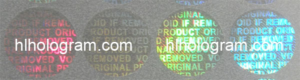 Above Hologram sticker is tamper evident hologram in silver base material. This 25mm size hologram can be cutted into smaller size as 23mm,21mm size circle shape.