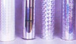 目前不少国内知名厂商已经采用了镭射烫金材料作为包装材料。如:伊利、恒源祥、英雄、“方塔”香烟、“两面针”牙膏、“伊利”雪糕等。 镭射转移膜:有PET和BOPP两种,可将全息图像转移到包装物上,特别适合于制作局部防伪包装。PET镭射膜 厚度:12μm-50μm,与纸板复合可制成镭射金银卡纸,耐高温PET可在软包装袋作夹层使用。 镭射纸,厚度:70克-250克,转移法制作,适用于各种印刷品,包装盒等。 PVC镭射膜,厚度:50μm-500μm,特别适合软质PVC的镭射加工,适用于各种塑胶制品。 |