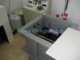 Electronic forming equipment. Soft and hard tank make hologram nickel master origination and operation nickel shim. The aim of this electronic formation is to copy the hologram from photoresist glass which has hologram imaged recorded, hologram imaged recombined onto PE film, or provide enough quantity operation shims for the embossing machines.