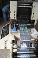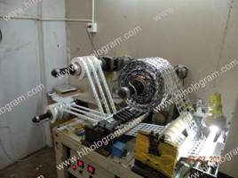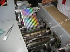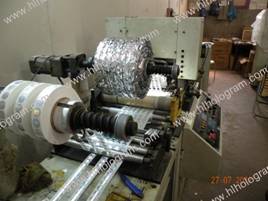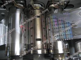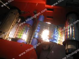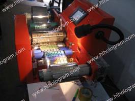Hologram recombination machine working on plastic film and press hologram onto it.