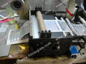 Model A automatic die-cutting machine is very good to die-cut hologram sticker precisely and fast. It has sheeting equipment which sheet hologram into panels automatic and slitter which can slit big hologram sticker roll into small rolls.
