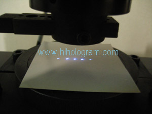Hologram images recombined on plastic film. After silver coating of the film, we can make hologram master origination by electronic forming.