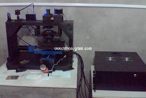 Dot-matrix master shooting machine in resolution(1270 DPI) Dot-matrix hologram master shooting system composed of optical, laser(15000 hours warranty), programmable controller, accurate platform, Optics bridge, computer and software. This system is intelligent engraving system. After you load engraving data which generated and optimized by our special software, it'll work automatic.