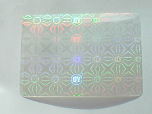 layer. The hologram is embossed on 25 micron, 50 micron and