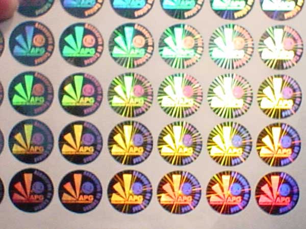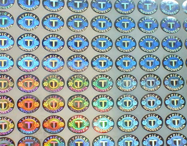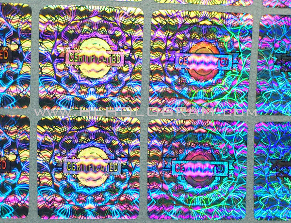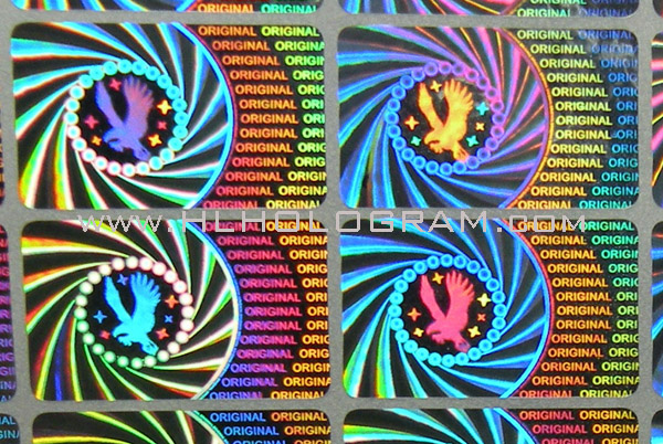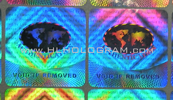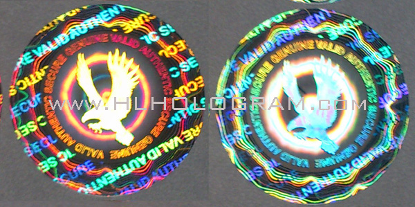 Kinematic movement hologram image can be made both by 2D/3D and dot-matrix type hologram. 2D/3D hologram kinematic movement comes from a sequential different viewing angle hologram lines with different color separation. 2D/3D hologram kinematic movement will have good result with shining hologram image with good design having 3-6 color sperated properply. Dot-matrix hologram kinematic movement effect is more smoothly than 2D/3D kinematic movement because Dot-matrix hologram machine can have more flips with more viewing angle than 2D/3D hologram lab. With our special digital Dot-matrix hologram and 2D/3D hologram technology, customized design logo or graph can be incorporated onto good kinematic movement hologram-patterns.