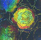 Dot-matrix hologram kinematic circumrotation ray effect. 15mm diameter.