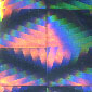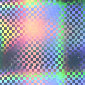 QC Hologram sticker. Dot-matrix holographic master origination photo with kinematic guilloche elements.