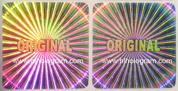 Original hologram sticker with circumrotation ray and zooming square dot matrix effect. 30mm*30mm