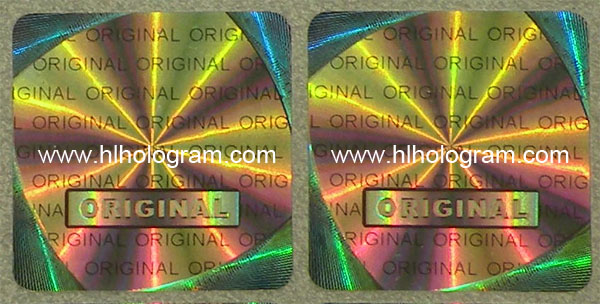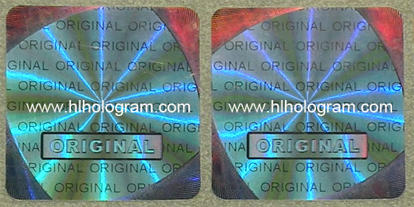 In the bottom area of hologram sticker has guillochine security lines and pillar ray moving effect.