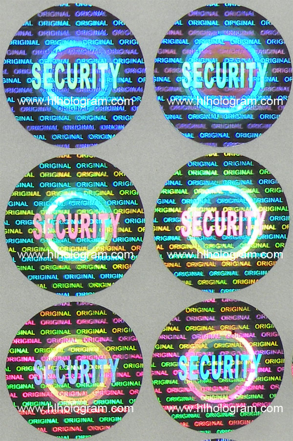 Dot-matrix lines create a continusly movement of lines which kinematic movement. The lines appear and disappear with different viewing angle. The 'SECURITY' design also is kinematic. Dot-matrix kinematic movement hologram has better effect than 2D/3D hologram kinematic movement