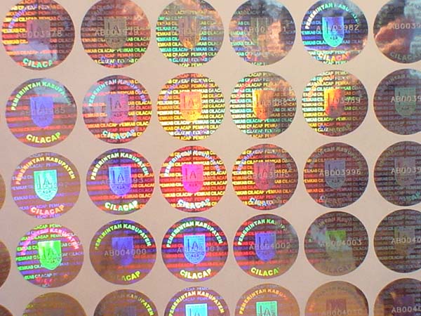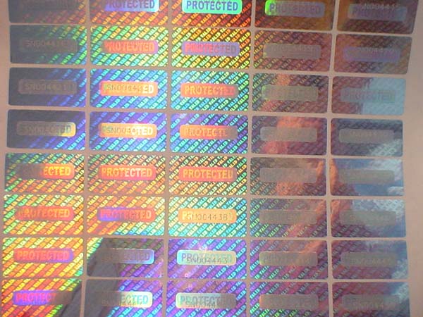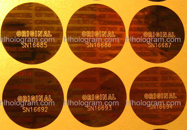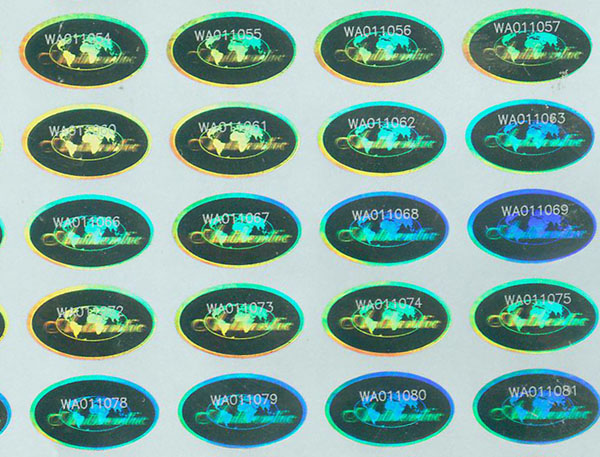 Demetalized hologram with serial number. We can make your logo or company on the sticker with serial number too.