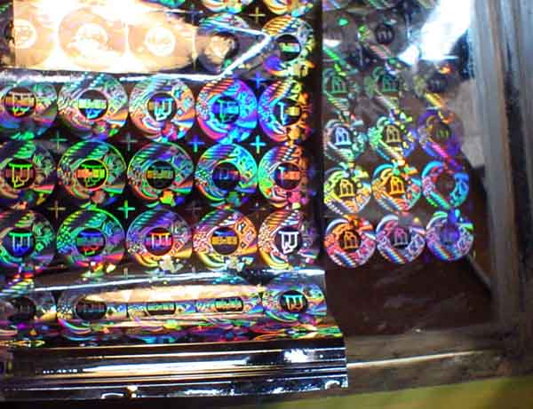 dot-matrix effect master operation shim(image is positive). This is photo of holography operation shim which has been embossed by hard embosser. Click here to see master origination. To see arkwork.